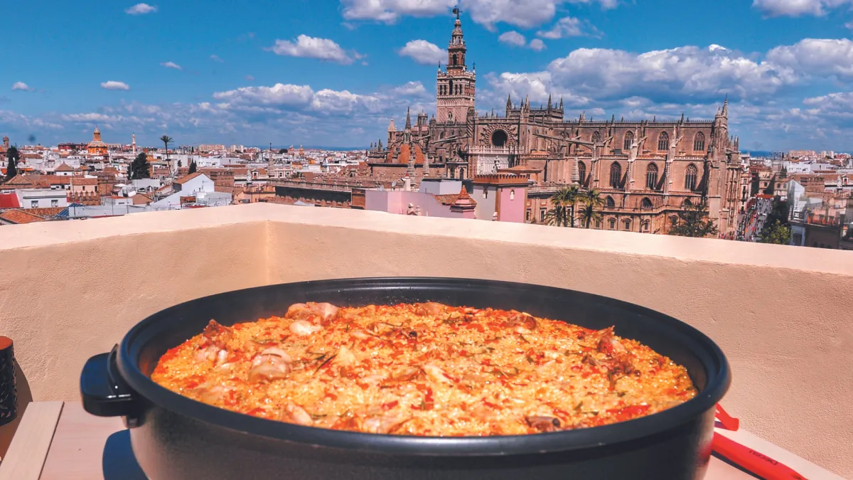 While the paella slowly simmers, take in breathtaking views spanning from Plaza de España to the iconic Torre Sevilla – Seville’s only skyscraper.