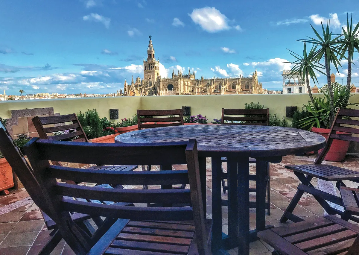 Immerse yourself in a unique setting as we head to an exclusive rooftop boasting unparalleled views of Seville’s historic center.